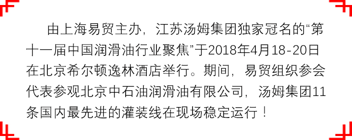 江蘇湯姆集團獨家冠名的中國潤滑油行業(yè)聚焦圓滿結(jié)束!