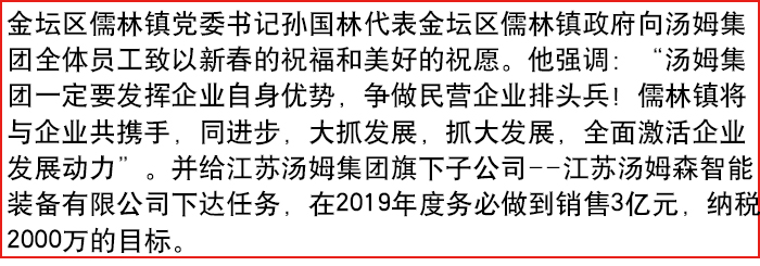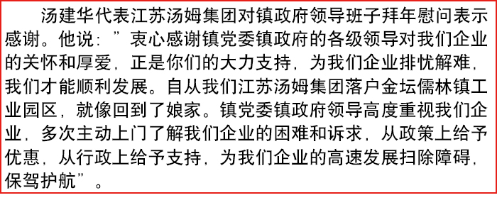 金壇區(qū)儒林鎮(zhèn)政府領導班子來湯姆集團拜年!