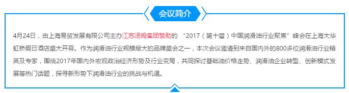 江蘇湯姆集團(tuán)贊助“2017(第十屆)中國潤滑油行業(yè)聚焦”大會