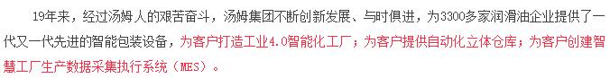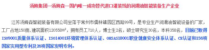 【福利】湯姆集團--湯姆森--國內唯一成功替代進口灌裝線的潤滑油智能裝備生產企業(yè)