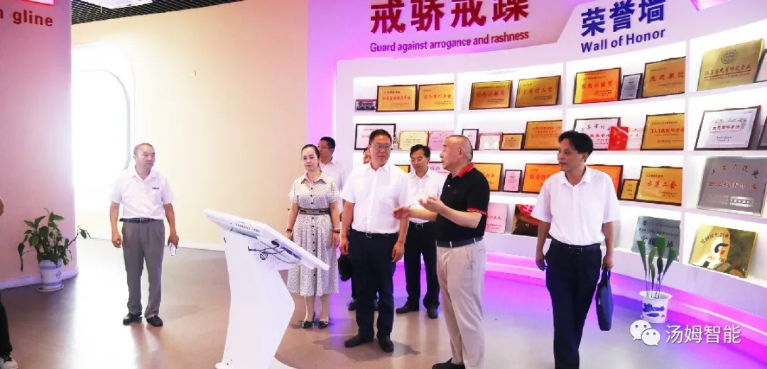 等領導一行蒞臨江蘇湯姆集團視察指導工作,江蘇湯姆集團董事長湯建華,湯姆森總經理王芳熱情接待并全程陪同,參觀了湯姆展廳,