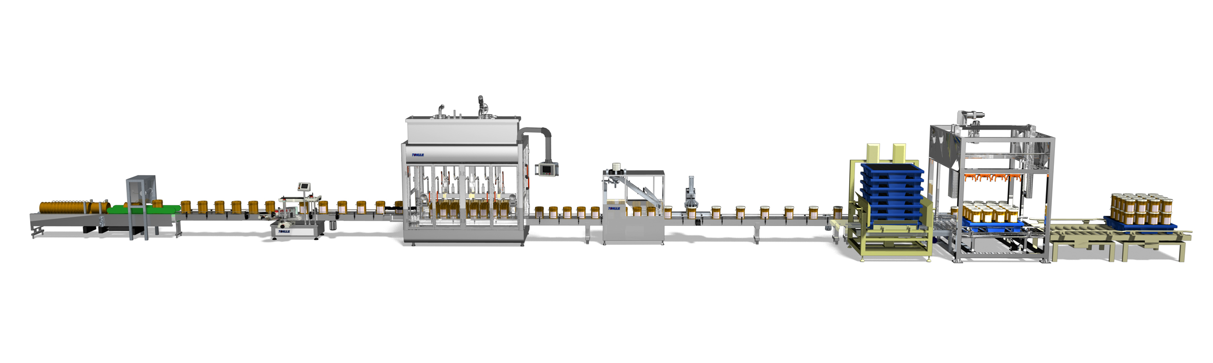 10kg—50kg稱重灌裝、旋蓋、貼標、封口工作流水線