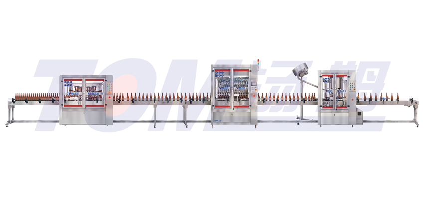 酒類、調味品回收瓶灌裝、壓(旋、扎)蓋,貼標工作流水線