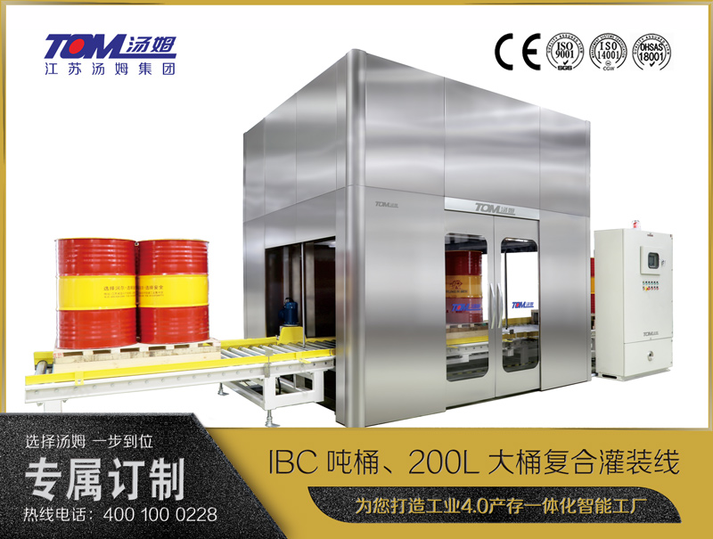 IBC噸桶、200L大桶復合灌裝線(自動卸蓋、灌裝、旋蓋)